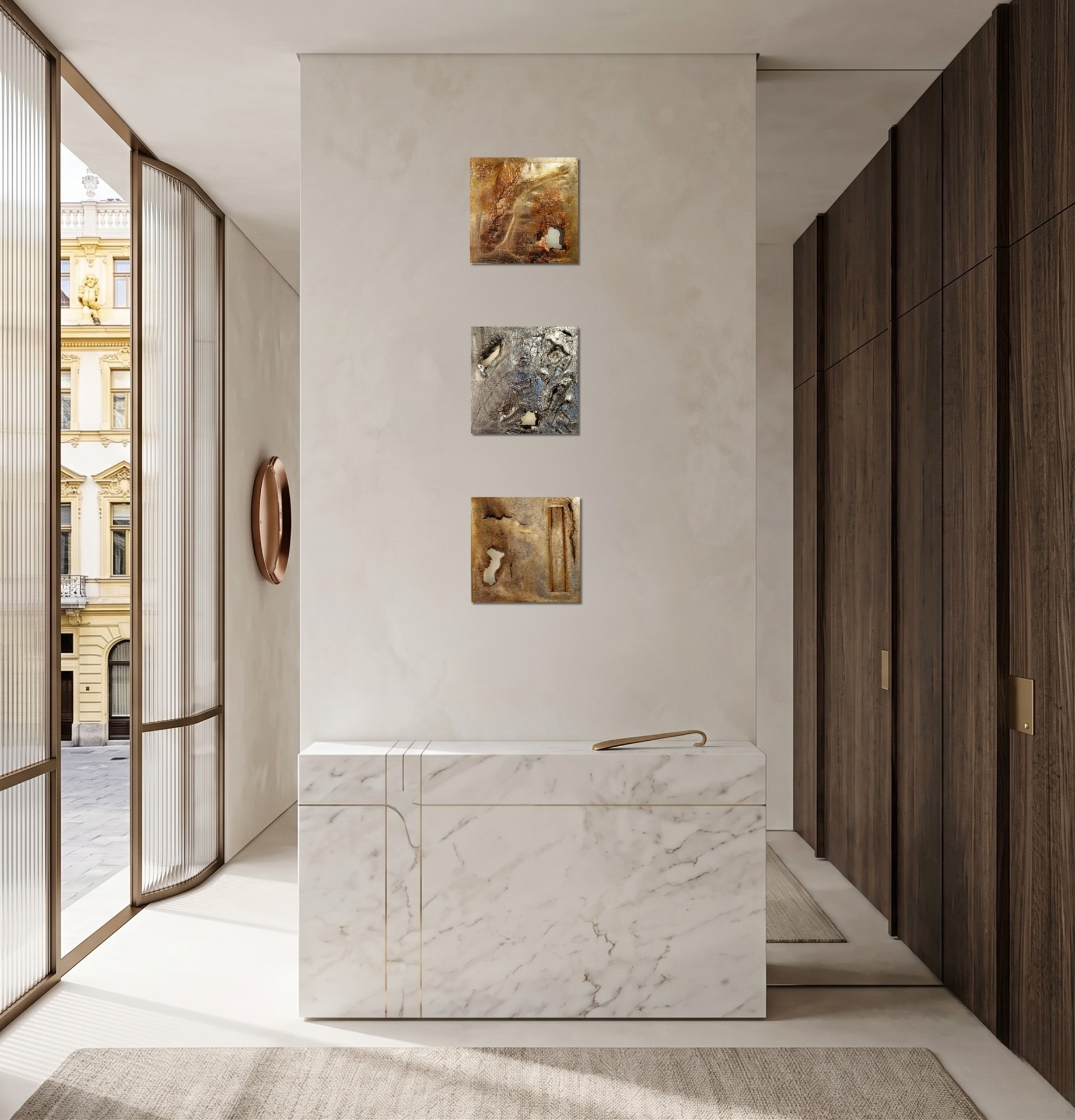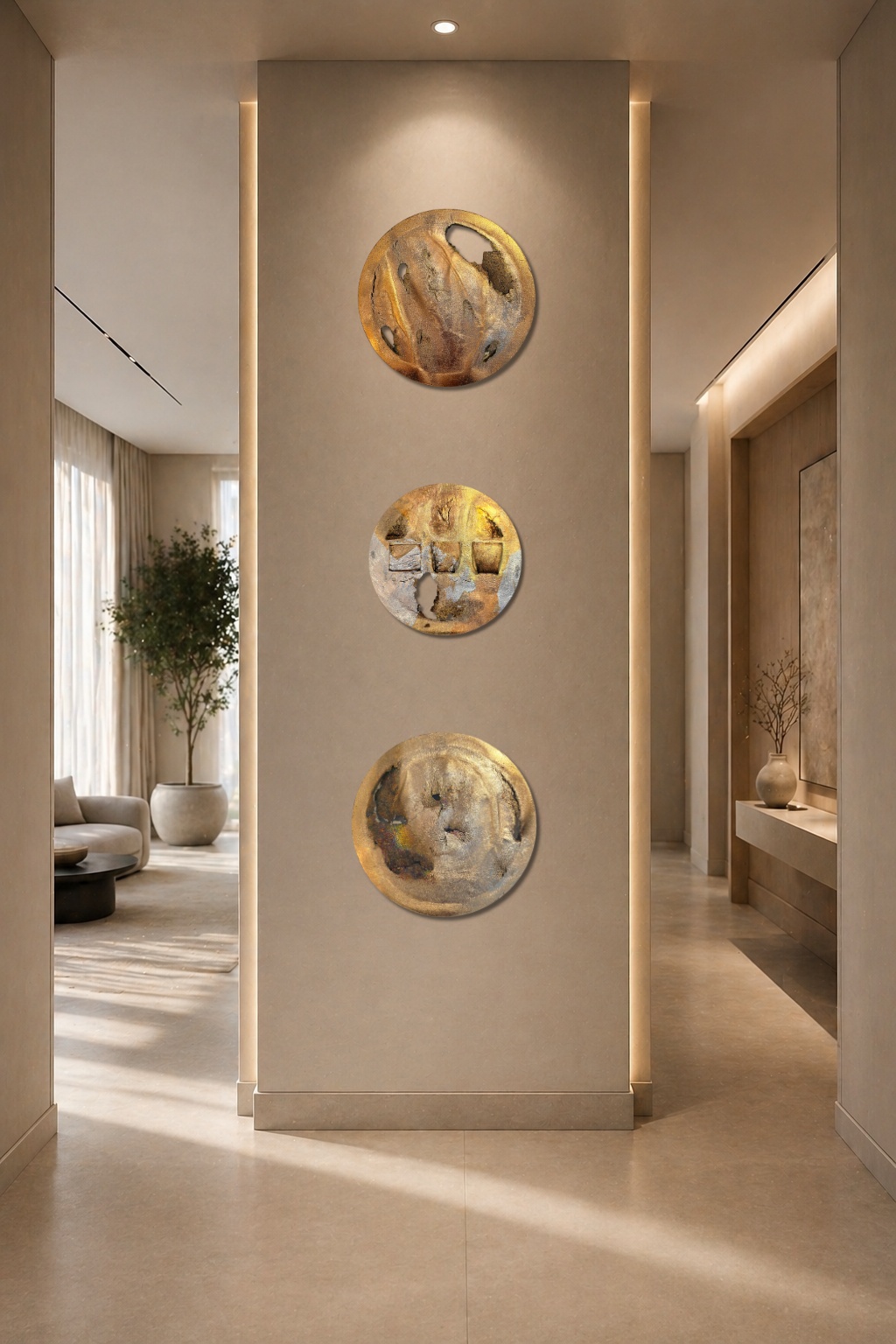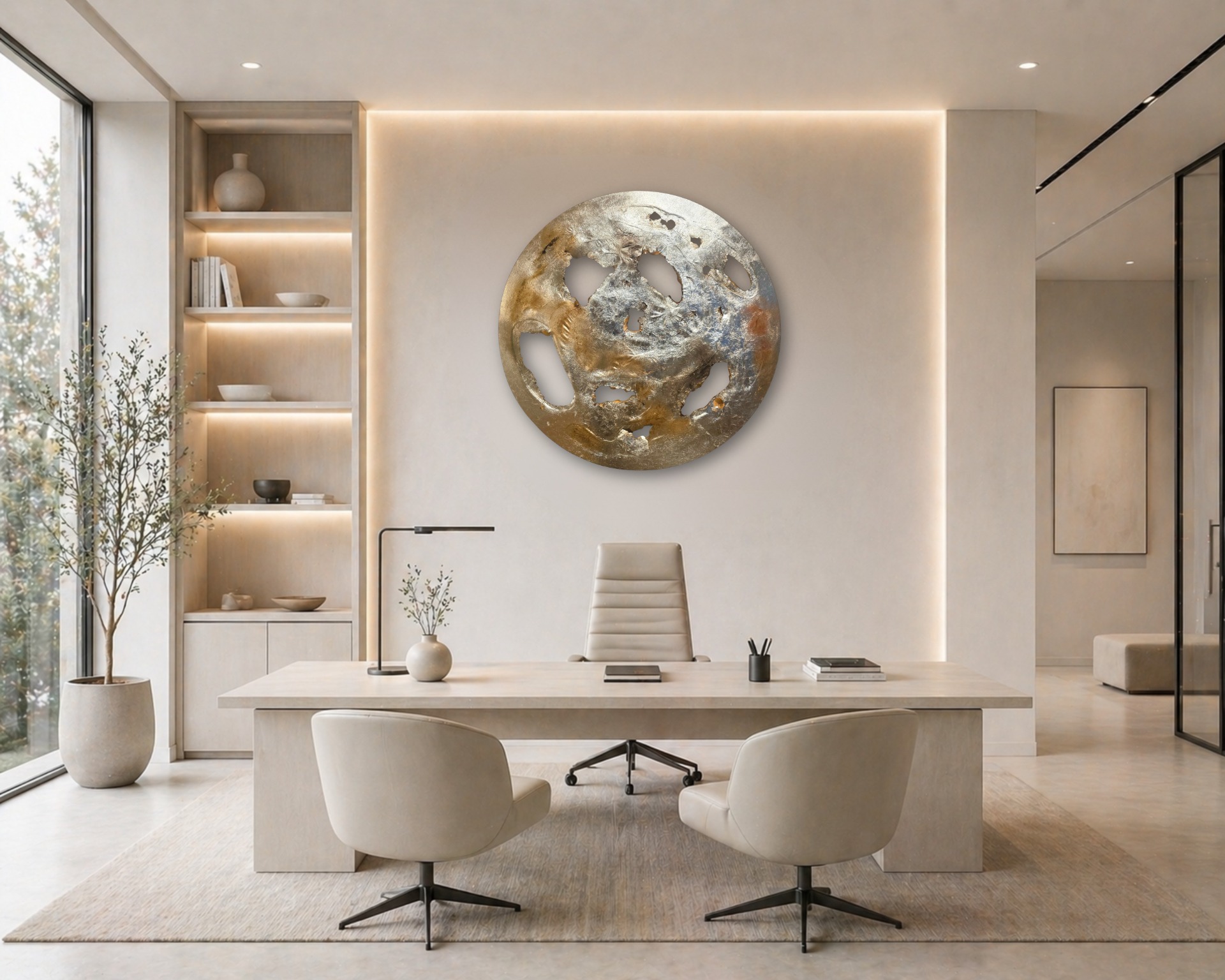 Ø 25-30 cm - Meditative forms for inner balance. The circle is a symbol of infinity, which, combined with the Aura technique, brings calming energy and modern elegance to your home. A perfect choice for the bedroom, either as a single masterpiece or arranged in a set of three.
